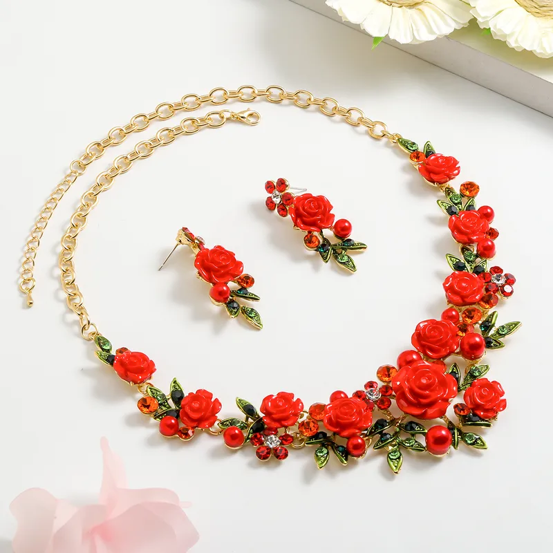 Luxurious Sweet Flower Alloy Polishing Plating Inlay Enamel Women’s Earrings Necklace