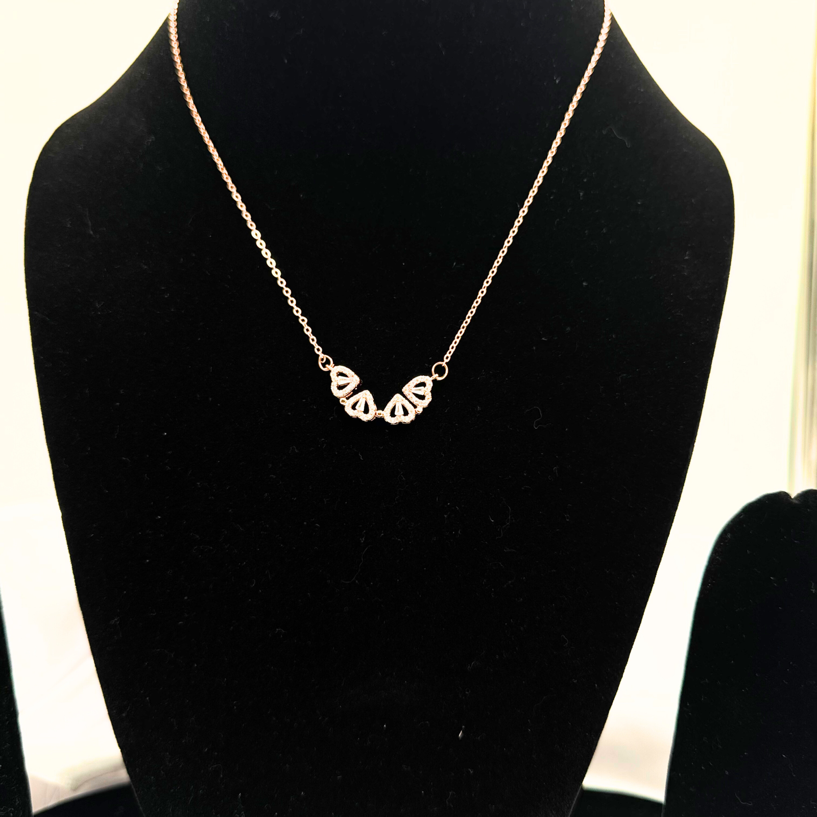 Be the first to review “Trio Heart Petal Necklace – Rose Gold with CZ Accents”